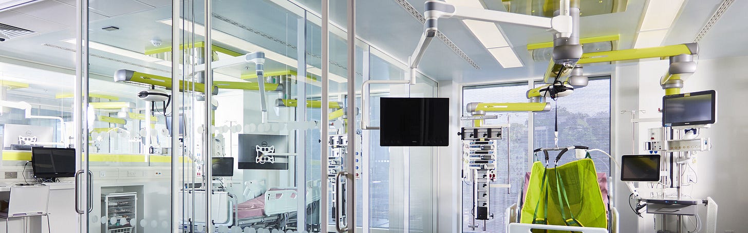 But in these wards they don’t point the patient’s eyes towards the beauty of nature, all the heads point inwards so the matrons and nurses can keep their eyes on our vitals. It’s a high-tech Panopticon for comatose headcases.
